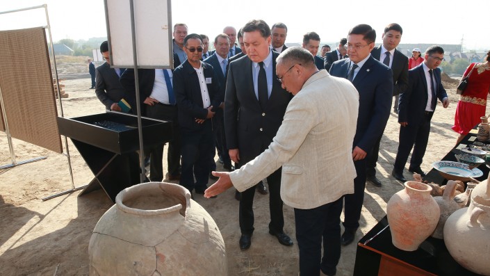Еще премьер-министр посетил площадку проекта по реставрации и музеефикации "Городища Шымкент", обнаруженного во время археологических раскопок. Проект несет историческую ценность и призван стать привлекательным туристическим объектом в рамках празднования в 2020 году года "Шымкент - культурная столица СНГ".