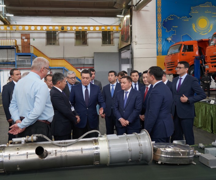 Ознакомление с индустриальным развитием продолжилось во время осмотра работы совместного казахстанско-российского машиностроительного предприятия "КАМАЗ-Инжиниринг". Мамину доложили, что имеются планы по выходу в ближайшее время на объем выпуска в 2500 единиц в год.