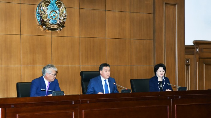 Аскар Мамин представил нового министра культуры и спорта Актоты Раимкулову, а также руководителей вновь образованных министерств торговли и интеграции Бахыта Султанова, экологии, геологии и природных ресурсов - Магзума Мирзагалиева.