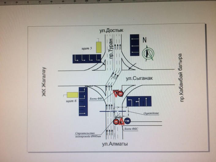 Сообщается, что для увеличения пропускной способности будут временно исключены полосы Bus Lane с проспекта Кабанбай батыра и организовано движение общего потока по всем полосам, а также исключены левые повороты с проспекта Кабанбай батыра на улицу Сыганак, как со стороны улицы Достык, так и со стороны улицы № 31. Аналогично будет исключен левый поворот с проспекта Кабанбай батыра на улицу Алматы в сторону улицы Сауран.