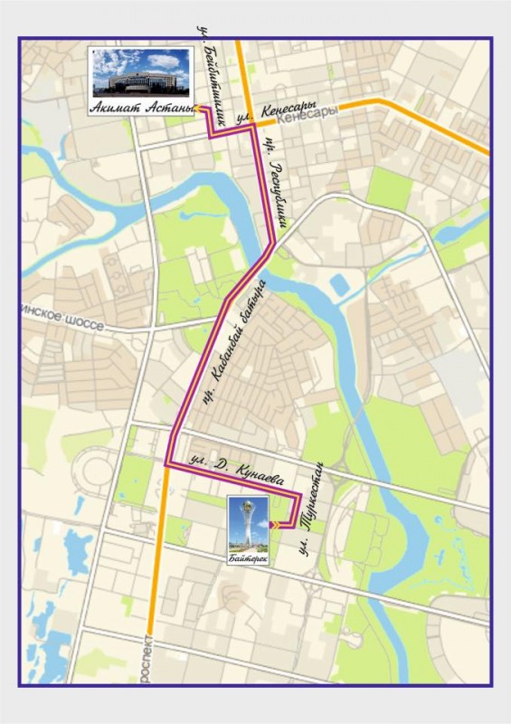 - по улице Кенесары от проспекта Республики до старой площади Астаны.