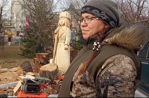 Опасения горожан насчет того, что деревянная Маншук не впишется в архитектуру сквера, художница не разделяет.
