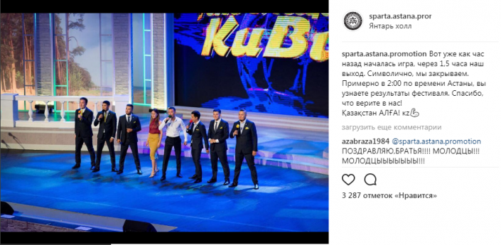 "Кутты болсын!!!Жарайсындар!!! Спарта - чемпион! Теперь в Казахстане все кубки "Голосящего Кивина" Летний Кубок ... Осталось только чемпионство! Вперед, Спарта!" - поделился в Instagram генеральный продюсер РТРК "Казахстан", шоумен и КВНщик Нурлан Коянбаев.