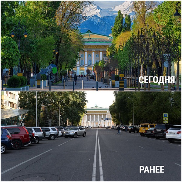 Помимо расширения пешеходных зон с использованием более эстетичного и экологичного покрытия, были расширены площади озеленения, запускаются новые фонтаны, устанавливается энергосберегающие уличное и тротуарное освещение, обновлены фасады зданий. К примеру, только по проспекту Абая были модернизированы более 200 кафе, ресторанов и магазинов.