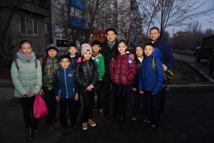 В ходе инспекции реконструированных дворов в Турксибском районе главе города доложили, что в текущем году в районе благоустроено 80 дворов с устройством асфальтового, резинового и брусчатого покрытий, установкой скамеек, урн, освещения, спортивных и детских площадок. Помимо этого, по словам акима района Павла Кулагина, в рамках реализации программы "Рухани жаңғыру" в районе построено несколько спортивных и детских площадок.