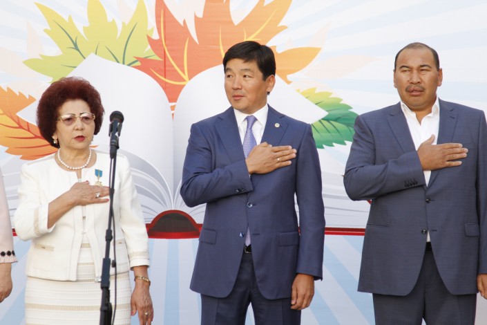 Градоначальник поздравил всех школьников, а также рассказал о том, что в честь 1000-летия города была выпущена книга о его истории. "Мы выпустили книгу "Алматы - мой любимый город". Ее подарили всем городским школам, детским садам. В ней описана 1000-летняя история города. У Алматы большое будущее. Открываются новые рабочие места, инвесторы приносят в город инновации. Когда наша молодежь закончит обучение, они смогут получить новые качественные рабочие места", - отметил аким. Также детей поздравил олимпийский чемпион Ермахан Ибраимов, который привел своего сына в первый класс. "За образованной молодежью - будущее. Учитесь только хорошо и поднимайте наш народ к вершинам", - сказал он.