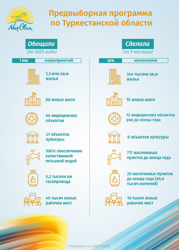 По его словам, в рамках озвученной Главой государства Касым-Жомартом Токаевым предвыборной программы "Путь перемен: Достойную жизнь каждому!" до 2025 года в регионе также планируется реализация множества социальных и культурных проектов.