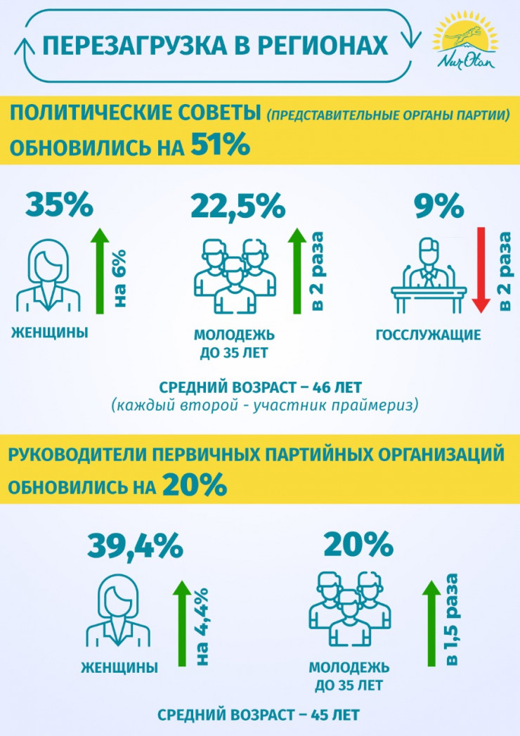 Он отметил, что состав политических советов Nur Otan в регионах обновился на 51 процент.