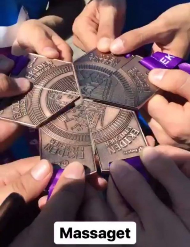 Участники марафона выкладывают в социальных сетях снимки с медалями Экидена. Как оказалось, эстафетные награды состоят из шести частей и собираются в единую картину.