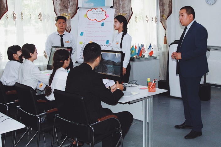 Студенты Колледжа индустрии туризма и гостеприимства Алматы по программе. Класс по туризму. Ученики разрабатывают 3D-экскурсии по городу.