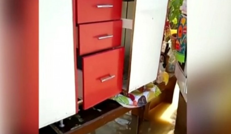 "Двор, полный воды. Пытаемся, что-то выносим наверх, на столы, хоть куда-то. Вот вокруг дома все подмыто. Стены падают. У соседей окно выпало. Трещины везде. Дверь выгнуло, стена падает", - говорит мужчина.