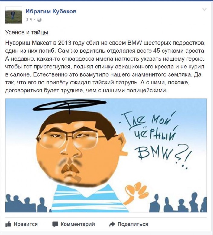 "Заусе́нец (рус.) - Максат Усенов, беспределящий за границей", - пишет в Twitter @RustamNazarov.