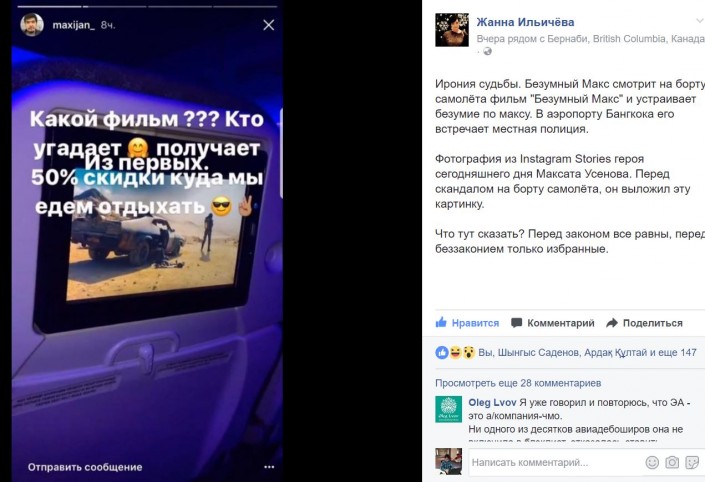 Казнет бурно отреагировал на инцидент с Максатом Усеновым, произошедший на борту самолета Алматы - Бангкок, передает корреспондент Tengrinews.kz.