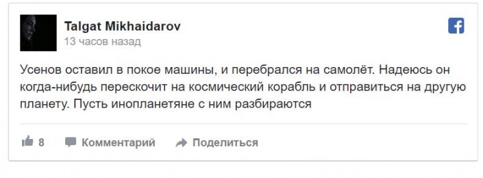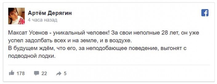 ‏ "Усенов снова бомбит. Хайпанул. Он как звезда 80-х, которого забывают, а он новый финт показывает", - пишет в Twitter @rustam_max.