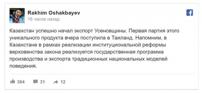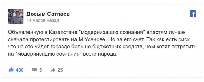 "Может первым в Пантеон по блату разместим Усенова. Вне очереди, со всеми почестями?" - предложил пиарщик Алишер Еликбаев в Twitter.