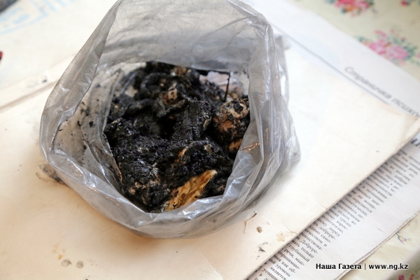 Собравшиеся в доме кочегара журналисты, биолог, а также директор учебного заведения, служащие акимата и представители полиции внимательно рассмотрели загадочное существо. Больше всего оно напоминало дохлую, черную от угольной пыли пиявку или колбасу с плавником, отмечает издание: "В общем, это совершенно не было похоже на динозавра. Рядом в пакете лежали ошметки оболочки, поверхность цвета монтажной пены отблескивала на свету".