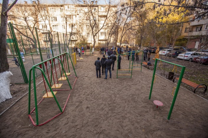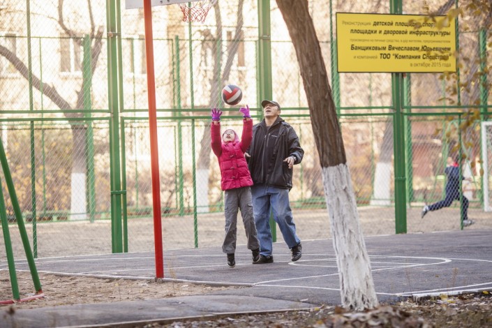 Жители домов №59 по улице Жибек жолы, №48 по улице Алимжанова и №48 и №46 по улице Валиханова получили новые футбольные поля, баскетбольные площадки, детские игровые комплексы. Кроме того, дворы были благоустроены урнами и лавками, высажены молодые деревья. В одном из дворов установлена фигура "Женщина с ребенком", символизирующая жизнь, рождение и созидание.