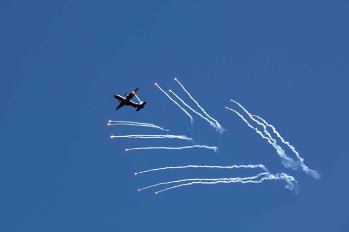 В завершение боевого парада пилотажная группа "Жетысу барысы" выполнила фигуры высшего пилотажа.