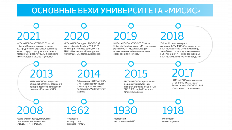 Бұл университет 2008 жылдан бастап Дмитрий Медведевтің жарлығымен МИСиС "ұлттық зерттеу технологиялық университеті" мәртебесін алған алғашқы ресейлік университет болды. 2014 жылы "МИСиС" ҒЗТУ QS World University Rankings нұсқасы бойынша алғаш рет әлемнің үздік жоғары оқу орындары қатарына кірді. QS:BRICS рейтингінде университет жетекші жоғары оқу орындары бойынша ТОП-100 қатарында. Сонымен қатар, сол жылы "МИСиС" халықаралық ғылыми кеңесі өз жұмысын бастап, әлемдік ғылыми кеңес өкілдерін, оның ішінде Кембридж, Стэнфорд, Технион және басқа да ғылыми-білім беру орталықтарын біріктірді. 2016 жылы университет Еуропа ядролық зерттеулер орталығында (CERN, Женева) SHIP (search for Hidden Particles) экспериментінің қатысушысы болды. 2021 жылы "МИСиС" ҒЗТУ QS "Инжиниринг-мұнай-газ ісі" пәндік рейтингісі бойынша әлемнің үздік 100 жоғары оқу орны қатарына кірді.