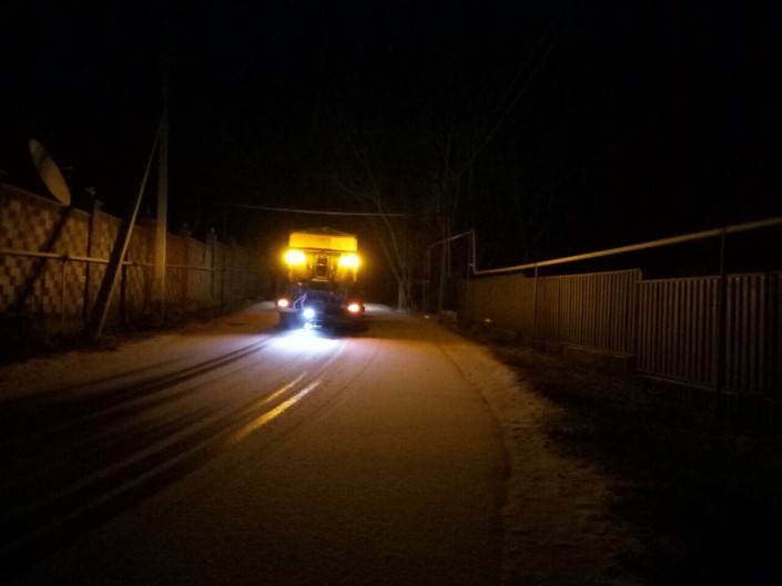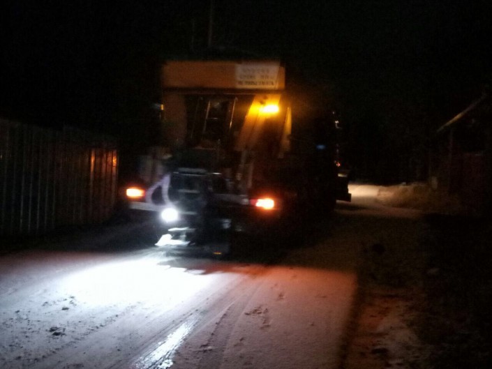 Коммунальные службы производят посыпку дорожного полотна противогололедными материалами в верхней и центральной частях города, подметают и сгребают снег на проезжей части дорог и тротуарах.