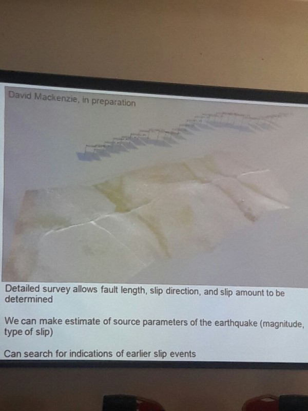 В своем докладе он презентовал результаты работы команды ученых, которая провела исследования разломов - трещин в земной коре, образовавшихся в результате землетрясений в Алматинской области. Уокер пояснил, что разлом - это по сути огромная трещина в камнях.