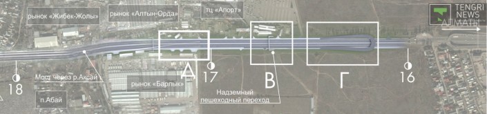 "Мост надземный будет сохранен и в то же время рекоструирован - уширен, и увеличена протяженность. Дополнительные надземные пешеходные переходы будут устанавливаться в районе "Молл Апорт", "Асыл Арман" и поселка Райымбек", - рассказали в АО "НК "КазАвтоЖол".