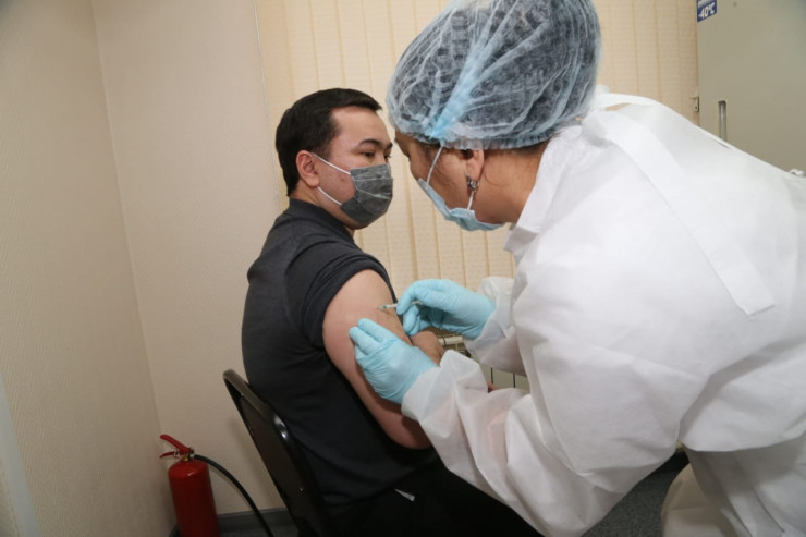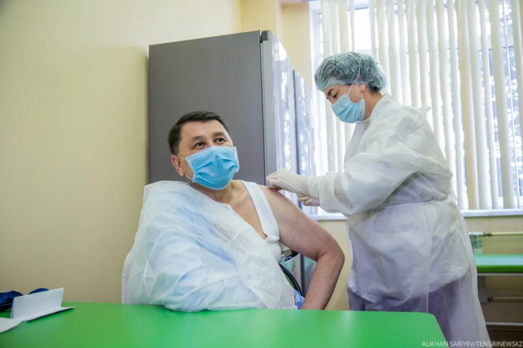Қарағанды облысының әкімі Жеңіс Қасымбек те вакцина салдырған.