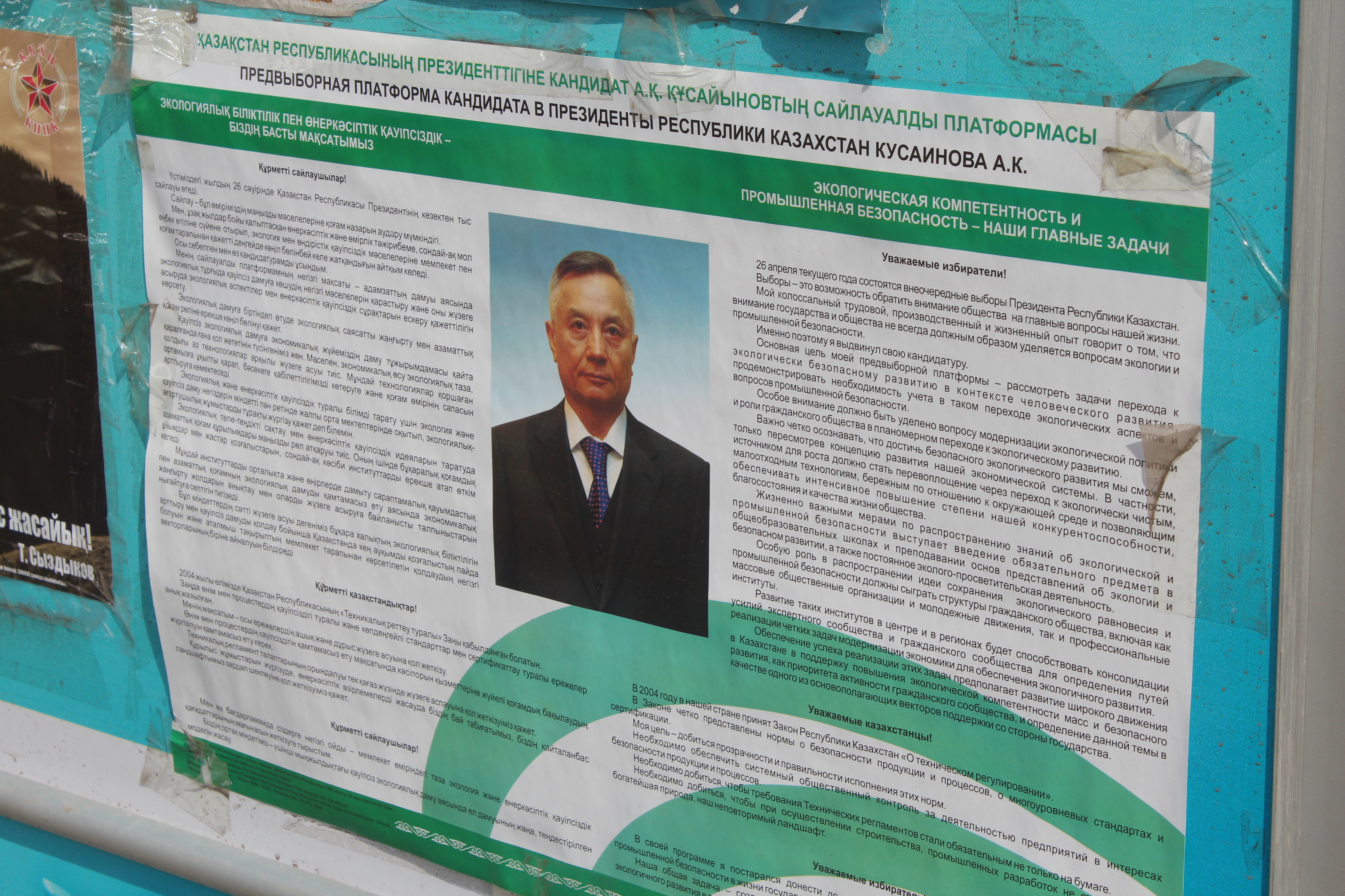 Бывшего соперника Назарбаева на выборах выдвинули на должность главы Федерации профсоюзов Так выглядела агитация в поддержку кандидатуры Кусаинова на выборах президента РК. Фото Ренат Ташкинбаев.