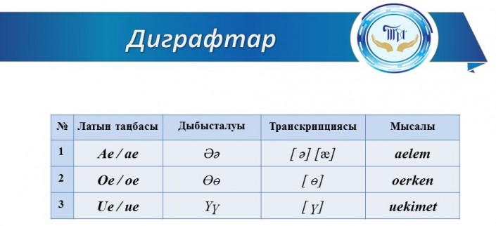 "За основу был взят такой принцип: одна буква - один звук, одна буква - два звука и один звук система диграфа. Для полноценного обеспечения звуковой системы казахского языка в алфавит было включено восемь диграфов, обозначающих восемь специфических звуков", - сообщил ранее директор республиканского центра развития языков имени Шаяхметова Ербол Тлешов.