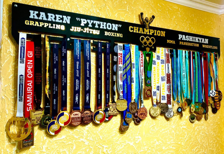 Карен Пашикян является 20-кратным чемпионом Алматы, 14-кратным чемпионом Казахстана, 4-кратным чемпионом Азии, 3-кратным чемпионом мира, заслуженным тренером и рефери в таких видах спорта, как грэпплинг, джиу-джитсу, панкратион, ММА, бокс, бодибилдинг.