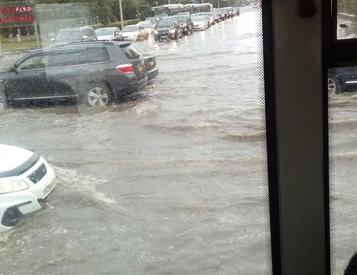 По словам очевидцев, по улице Орынбор вдоль Дома министерств уровень воды достиг нескольких сантиметров. В этой связи движение автотранспорта на данном участке дороги было затруднено. Кроме того, большое скопление дождевых вод образовалось и на проспекте Момышулы.