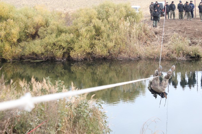 Далее их снова ждало преодоление водной преграды длиной в 40 метров. На этот раз им приходилось преодолевать ее по канату.