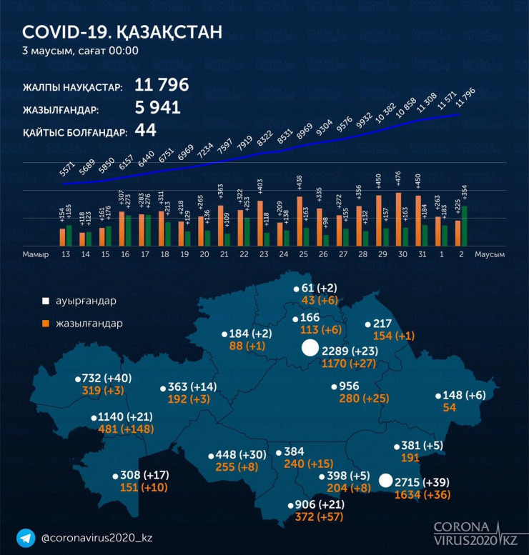 Всего в стране выявлено 11 796 заболевших коронавирусом. Число выздоровевших пациентов увеличилось до 5941. Летальных случаев от COVID-19 - 44.