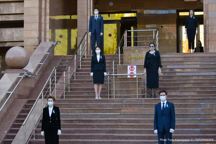 Руководители госорганов вышли из Дома министерств, чтобы почтить память жертв коронавируса в Казахстане, передает корреспондент Tengrinews.kz.