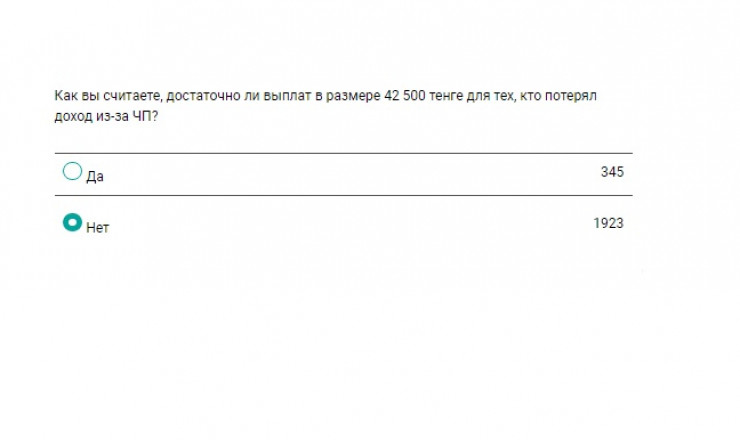 Практически все опрошенные (85 процентов) считают, что этой суммы недостаточно для тех, кто потерял доход из-за режима чрезвычайного положения.
