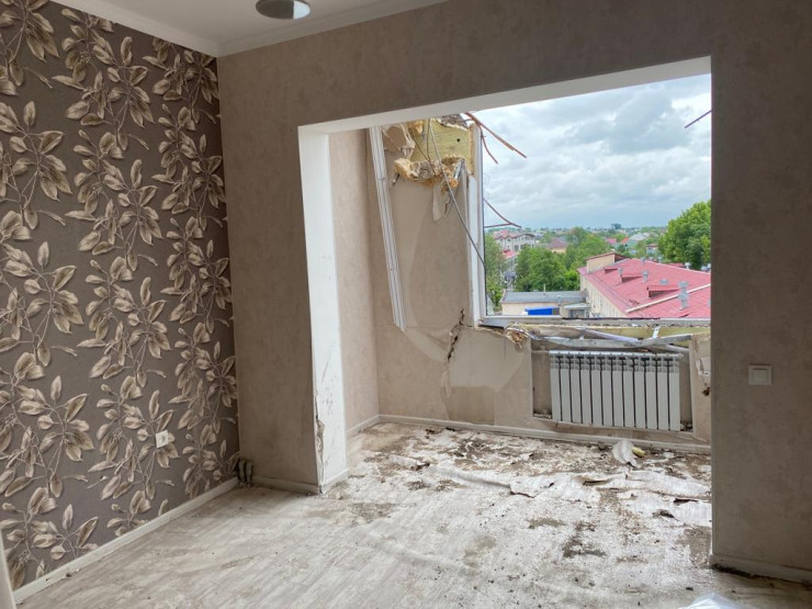 В квартире Вадима разрушен балкон и испорчена мебель. А также в буквальном смысле у них нет крыши. К слову, вчера ночью были проливные дожди, которые полностью затопили квартиру молодой семьи. Теперь они задаются вопросом, за чей счет и когда будет восстановлена их пятикомнатная квартира. Семью Чувайловых на время приютили их родственники, но так долго продолжаться не может, считает Вадим.