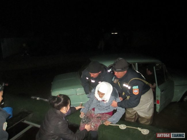 Спасатели эвакуируют бабушку. © aktobetimes.kz