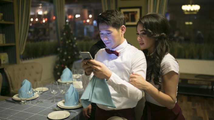 Серик Ибрагимов в роли официанта в мюзикле "Подарок".