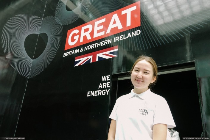 Диана Утежанова также работает в павильоне Великобритании. Студентка приехала из Кокшетау попрактиковать свой английский.