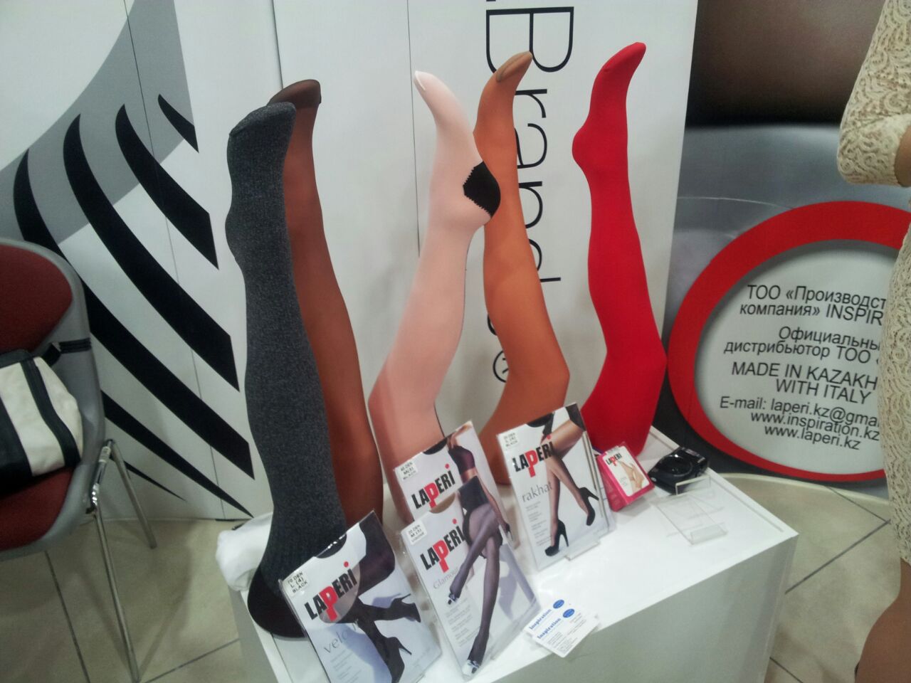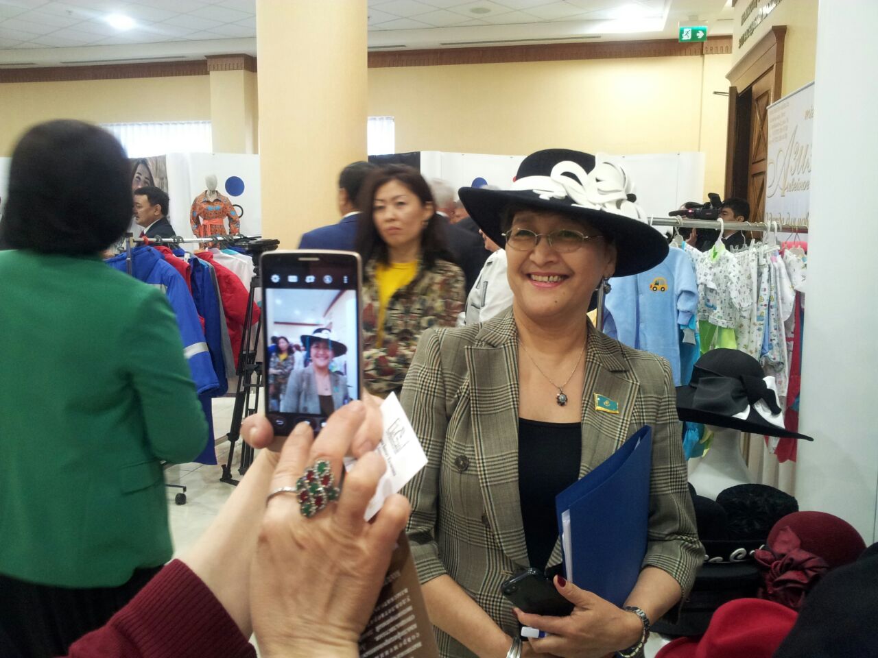 Чулки и шляпки с лейблом QazBrands разрекламировали депутатам На выставке, организованной в Мажилисе Парламента РК. Фото Tengrinews.kz