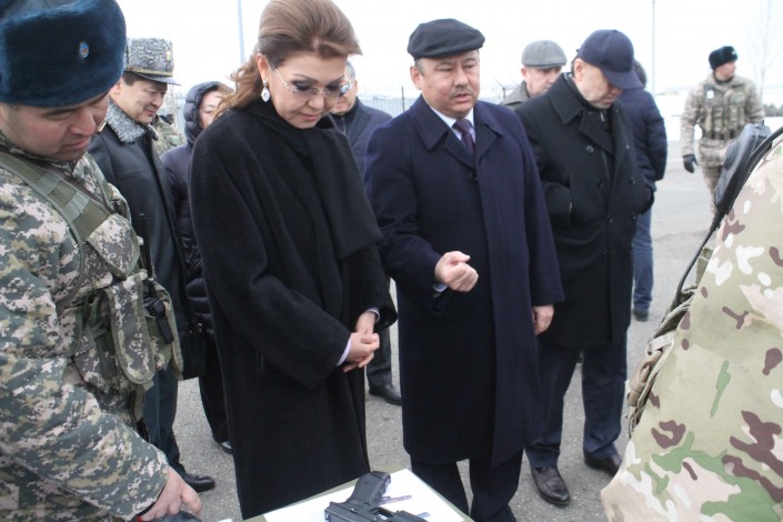 "Как игрушечный", - смеясь сказала Дарига Назарбаева, показывая на одну из штурмовых винтовок в маскировочном окрасе.