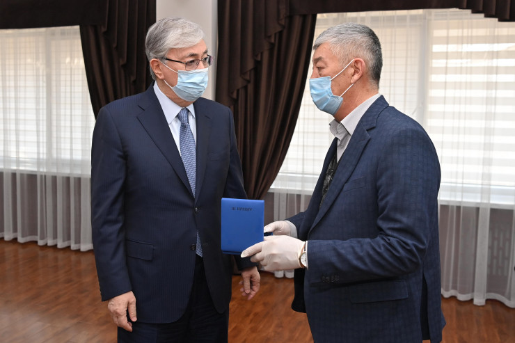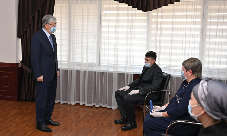 Затем Касым-Жомарт Токаев лично вручил родственникам награды, которых их мужья и отцы были удостоены за проявленную отвагу и самоотверженность при исполнении воинского и служебного долга, за подвиги, совершенные при защите интересов государства.