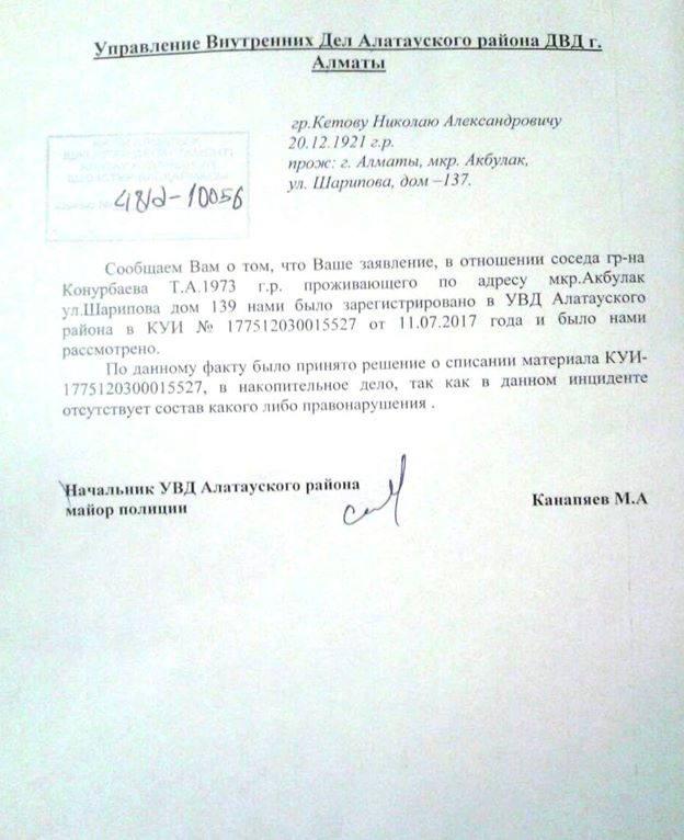 Как уже сообщалось, инцидент произошел вечером 11 июля в микрорайоне "Акбулак". Собаку по кличке Рада смертельно ранил сосед семьи Бокань Конурбаев в тот момент, когда она просунула нос в выкопанную им самим яму. Животное умерло в течение трех минут на руках хозяев, в частности, малолетнего сына.