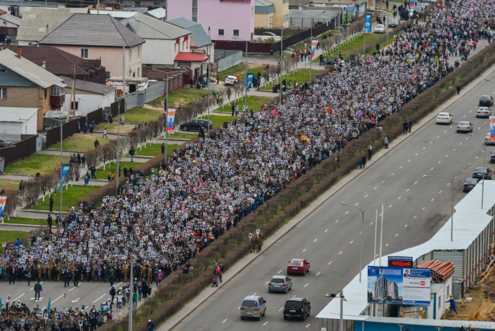 Участники шествия вспоминают своих отцов и дедов.