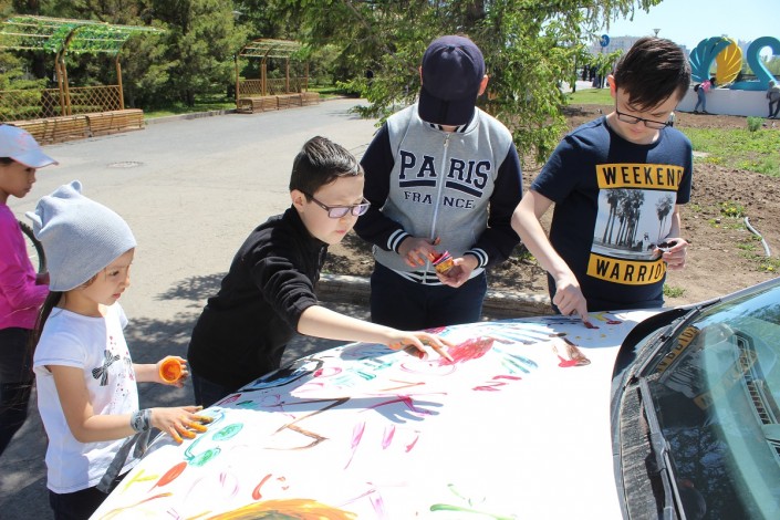 Им дали возможность выступить в роли дизайнеров. На авто появились смешные рожицы, разноцветные круги, линии и точки. А на капоте одной из машин красовалась надпись "Майнкрафт".