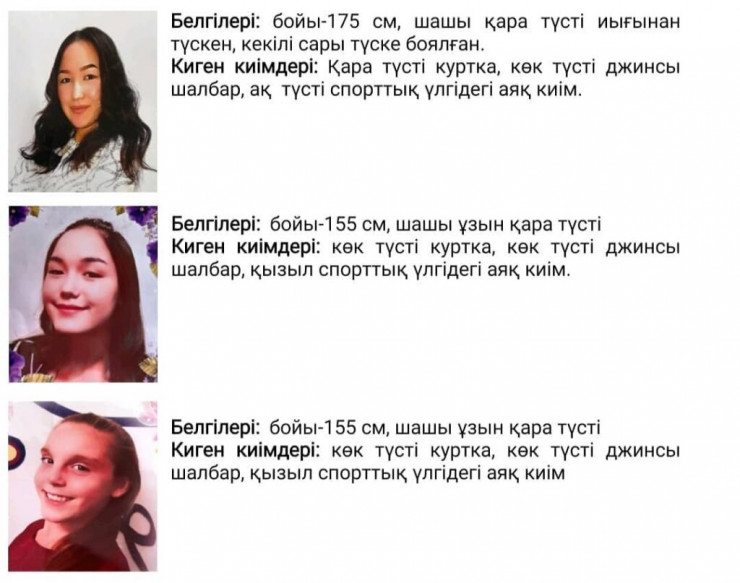 Если кому-то известно о судьбе пропавших воспитанниц, полиция просит сообщить в дежурный отдел по телефонам: 8 (7242) 29-70-10, 8 (7242) 29-75-20, 8 (7242) 29-75-02, 8 (705) 255-81-25 или 102.