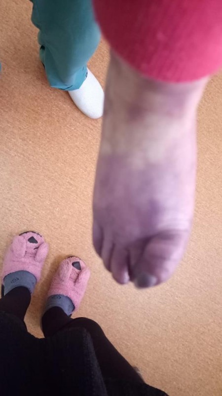"22 декабря медсестра поставила катетер моей дочери на правую ногу. После этого ей было сделано 2-3 укола. Установку катетера никто, кроме медсестры, не регулировал. Но через три дня, увидев, в каком состоянии была нога моей дочери, я испугалась и рассказала медсестре. Тогда медсестра, которая устанавливала катетер, убрала его и позвала на помощь главу отделения и заместителя главного врача. Они сказали, что это не страшно. И делали на ее ножку компрессы", - написала мать девочки.