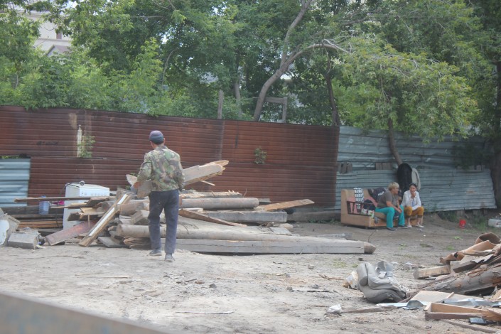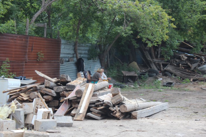 На месте, где сейчас ведутся работы по сносу частного домостроения, находятся две родственницы Адильбека Мейрамова.