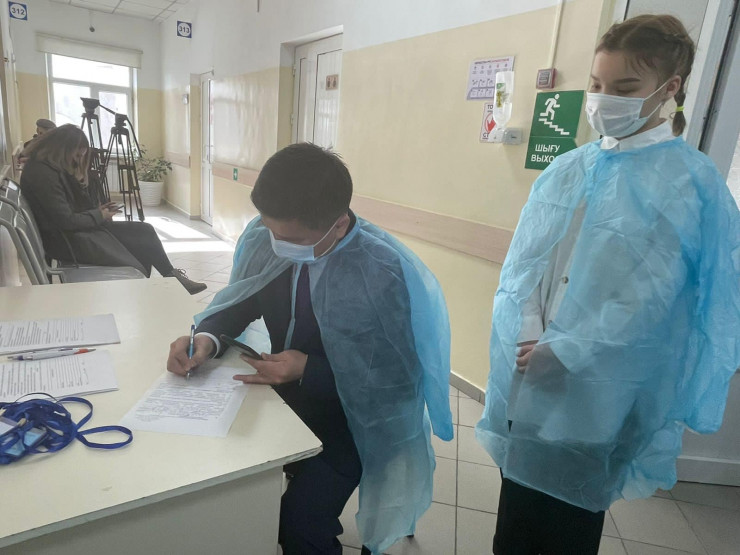 Во вторник, 16 ноября, главный врач Шымкента Бахытжан Позилов посетил поликлинику № 13, чтобы лично удостовериться в правильности проведения процедуры вакцинации от коронавируса. Среди желающих получить первую дозу американской вакцины Pfizer оказалась и дочь главврача, сообщает Tengrinews.kz со ссылкой на "Отырар".