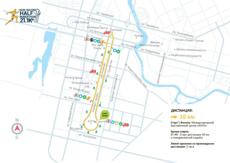 В связи с загруженностью дорог участникам забега рекомендуют добираться до места старта (МВЦ EXPO) на автобусе до пересечения улицы Рыскулова и проспекта Мангилик Ел. Парковка возле стартового городка будет невозможна.